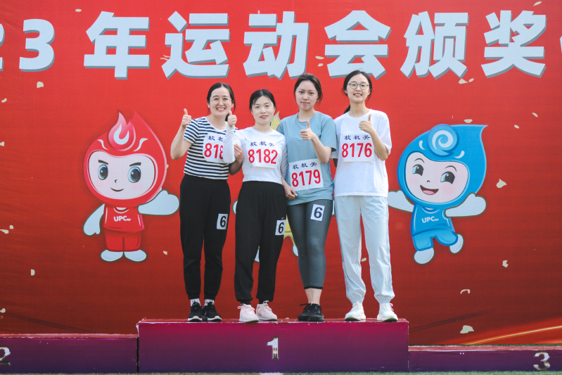 教工女子丙组4×400米接力比赛中荣获全校第一名